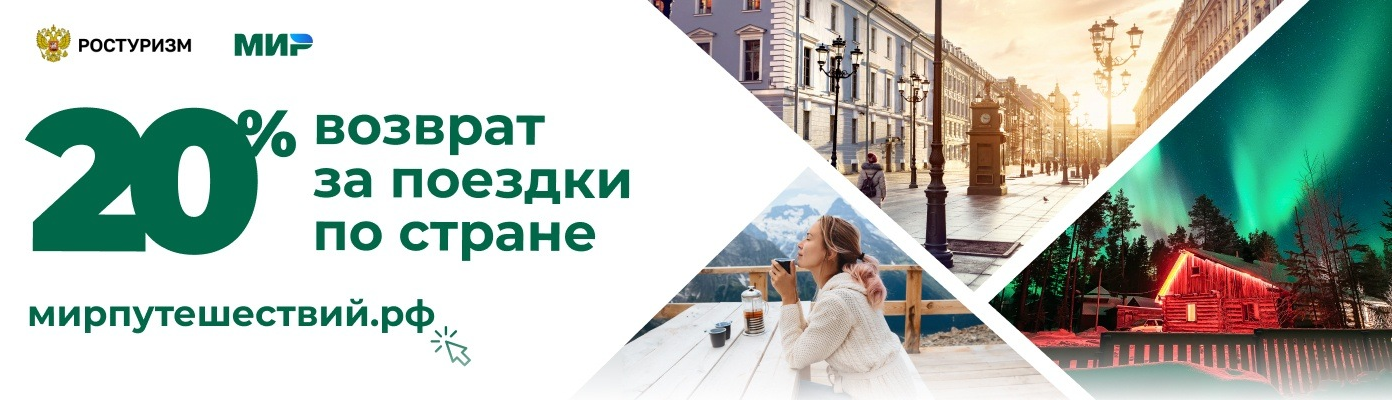 Дорогие туристы, оплачивая картой МИР, Вы получаете до 20% от стоимости тура на карту в качестве кэшбека в течение 5 рабочих дней!